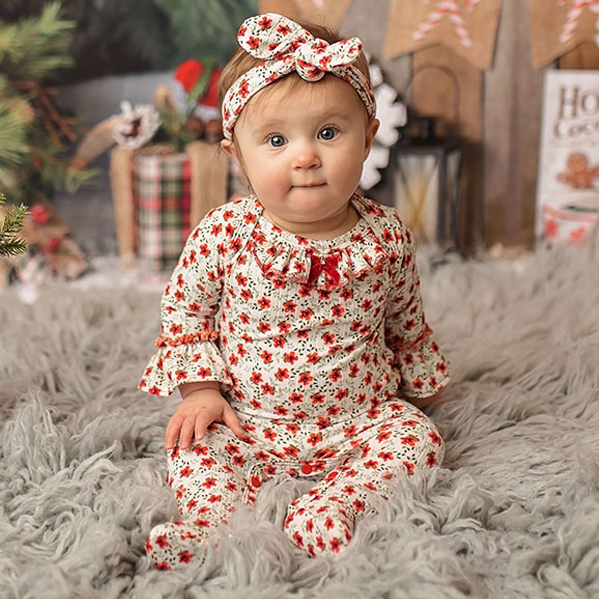 Haute Baby "Holly Jolly" Footie with Ruffled Butt for Newborns and Babies