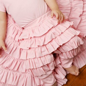 ruffled "Ella" pants in pink will move and flow when she kicks and turns - albeit not on the dance floor... but on the living room floor or her crib! Lightweight and cool, these are comfortable pull ups that match perfectly with Lemon Loves Layette Madison or Alison Onesies.