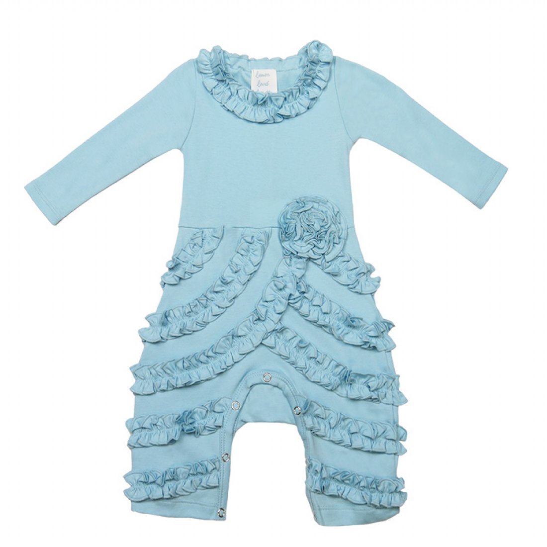 Lemon Loves Layette "Olivia" Romper for Newborn and Baby Girls in Cinderella Blue
