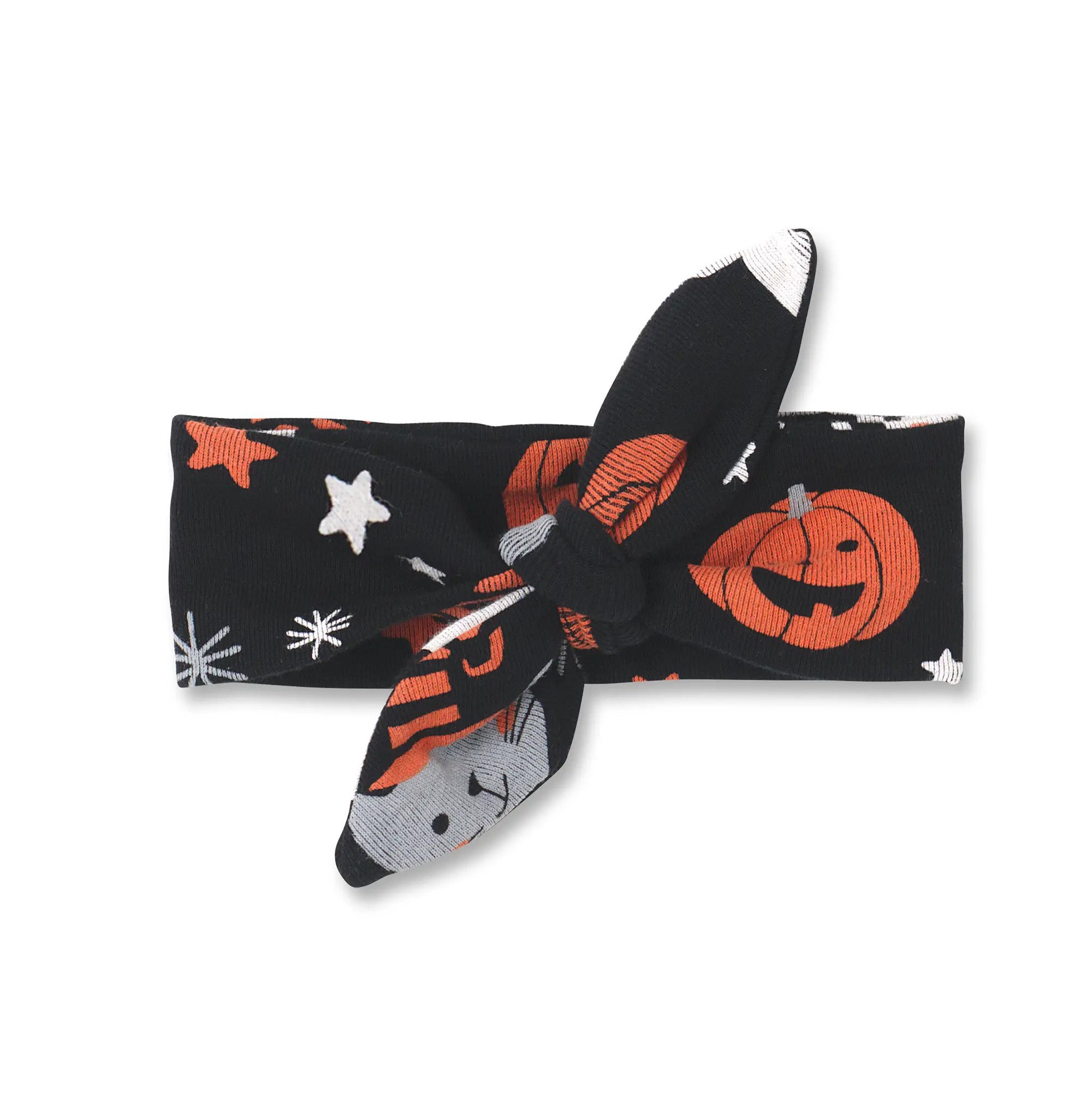 The matching headband to Tesa Babe "Pumpkin Party" collection has arrived! Just "boo-ti-ful" for Halloween! Headband features playful ghosts and pumpkins against a black background.